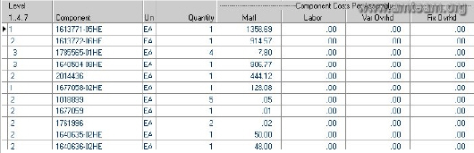 由于集成化的ERP系統(tǒng)都以物料需求計劃驅動,而BOM是基礎。事實上制造BOM的結構將決定產(chǎn)品的成本和物料計劃的運行。任何對BOM的變動都可能影響物料需求,存貨和生產(chǎn)成本。無論物料層次,數(shù)量還是單位都會對成本產(chǎn)生影響。如下圖所示: