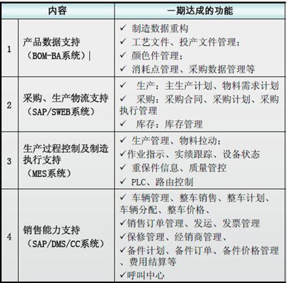 1)打造東風(fēng)自主品牌,全面實施并達成信息系統(tǒng)規(guī)劃一期項目的規(guī)劃目標(biāo)。
