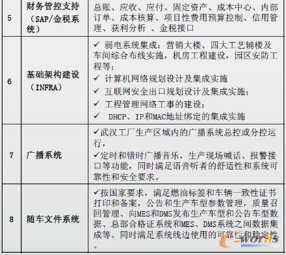 東風(fēng)乘用車信息系統(tǒng)一期規(guī)劃項目:BOM(BA)系統(tǒng)、制造執(zhí)行系統(tǒng)(MES)、企業(yè)資源管理(SAP)系統(tǒng)、供應(yīng)商交互平臺系統(tǒng)(SWEB)、經(jīng)銷商管理系統(tǒng)(DMS)、生產(chǎn)試裝管理系統(tǒng)(PTS)、信息共享平臺系統(tǒng)(EIP)、呼叫中心系統(tǒng)(CallCenter)、外部網(wǎng)站系統(tǒng)建設(shè)、弱電系統(tǒng)集成實施(包括CCR機房工程、綜合布線系統(tǒng)、安防工程、一卡通系統(tǒng)、3A系統(tǒng))、計算機網(wǎng)絡(luò)設(shè)備與集成、精密空調(diào)與UPS設(shè)備與集成實施、供應(yīng)商和經(jīng)銷商網(wǎng)絡(luò)支持設(shè)備。