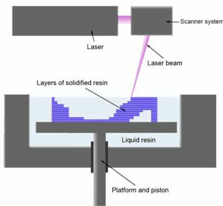 立體光刻造型技術,網(wǎng)友們可以想象一下把一根黃瓜切成很薄的薄片再拼成一整根。先由軟件把3D的數(shù)字模型,“切”成若干個平面,這就形成了很多個剖面,在工作的時候,有一個可以舉升的平臺,這個平臺周圍有一個液體槽,槽里面充滿了可以紫外線照射固化的液體,紫外線激光會從底層做起,固化最底層的,然后平臺下移,固化下一層,如此往復,直到最終成型。