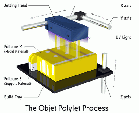 這是最近才發(fā)明的技術,其中Polyjet矩陣是Object Geomatries公司2007年發(fā)布的。其技術原理是噴射超薄層的光固化物,并且可以噴射多種不同的材料,其最薄的層,只有16微米。