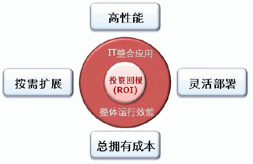 “IT四維效能”企業(yè)級應用標準,以用戶最佳的投資回報(ROI)為核心和目標,覆蓋高性能、按需擴展、靈活部署和總體擁有成本(TCO)四個關鍵維度,并充分利用最新的處理器和硬件技術、最新的操作系統(tǒng)及數(shù)據(jù)庫系統(tǒng)計算技術,滿足企業(yè)IT整合應用、大規(guī)模應用和整體運行效能的需要。