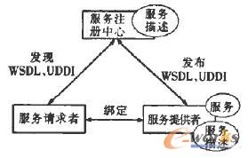 Web Service即Web服務,是建立在HTML、XML、SOAP、UDDI等標準Web協(xié)議基礎上的一種面向服務的新架構。這種架構包括服務提供者、服務請求者和服務注冊中心3種角色,執(zhí)行發(fā)布、發(fā)現(xiàn)和綁定3個動作,見圖1。