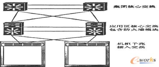 數(shù)據(jù)中心網(wǎng)絡(luò)的設(shè)計包含了研發(fā)和公共應(yīng)用服務(wù)兩大部分,兩個區(qū)域的數(shù)據(jù)都是企業(yè)安全性要求較高的,因此采用帶防火墻業(yè)務(wù)板的高端交換作為核心交換與集團(tuán)核心交換全冗余交叉互連,既保證了可靠性也保證了安全性。機(jī)房的每個機(jī)柜都放置高性能的千兆接入交換,簡潔、美觀且實(shí)用。