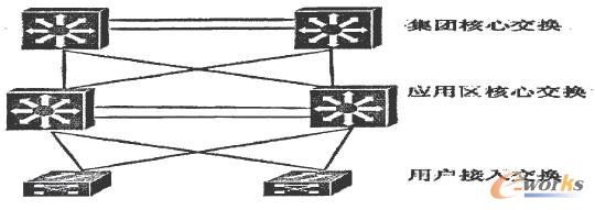 IDC骨干網(wǎng)絡(luò)是支持IDC多應(yīng)用服務(wù)正常運(yùn)行的基礎(chǔ),在制造企業(yè)中包含支持研發(fā)、公共應(yīng)用、財務(wù)等核心服務(wù)的網(wǎng)絡(luò)架構(gòu),模型如圖2-2: