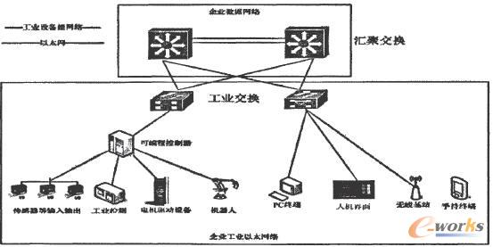 生產(chǎn)制造車間的工業(yè)以太網(wǎng)是為了解決車間和生產(chǎn)工控設(shè)備的只能控制和生產(chǎn)數(shù)據(jù)的下發(fā)執(zhí)行。通過工業(yè)交換機(jī)和可編程控制器將工業(yè)設(shè)備級網(wǎng)絡(luò)通IP數(shù)據(jù)網(wǎng)絡(luò)結(jié)合在一起,實(shí)現(xiàn)了辦公、智控及人機(jī)交互設(shè)備網(wǎng)絡(luò)的智能一體化。