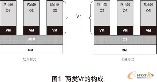 Vr由一個(gè)基于虛擬機(jī)的具有路由功能的操作系統(tǒng)平臺(tái)提供的。它基于路由器硬件平臺(tái),但通過(guò)系統(tǒng)虛擬技術(shù),實(shí)現(xiàn)多個(gè)路由器功能模塊獨(dú)立工作,在單個(gè)物理設(shè)備上提供多個(gè)路由器的功能。典型Vr由4部分構(gòu)成(圖1):