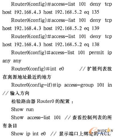 黑客的入侵經(jīng)常會(huì)利用某些特殊端口,像135,139,138,80等端口,關(guān)閉這些端口能夠有效地阻止一些病毒和木馬程序的攻擊,防止電腦被黑,這些可以通過ACL的配置來(lái)對(duì)這些端口進(jìn)行過濾。
