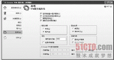 在K-Secure VPN 服務(wù)器程序管理窗口左側(cè)單擊“選項(xiàng)”按鈕,在右側(cè)窗口中(如圖3 所示)選中“使用主密碼”項(xiàng),在彈出窗口中輸入主密碼即可。這樣,當(dāng)調(diào)整K-Secure VPN 配置(如修改規(guī)則)時(shí),就必須輸入該密碼。