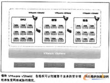 vShield解決方案使客戶可以輕松地為同一虛擬數(shù)據(jù)中心內(nèi)分屬不同信任級別的應用程序(例如生產(chǎn)和開發(fā)、財務和銷售、機密和非機密應用程序等)提供支持。vShield中的虛擬化管理程序級防火墻可以確保對所有部署的應用程序都實施正確的分段和信任區(qū)域。