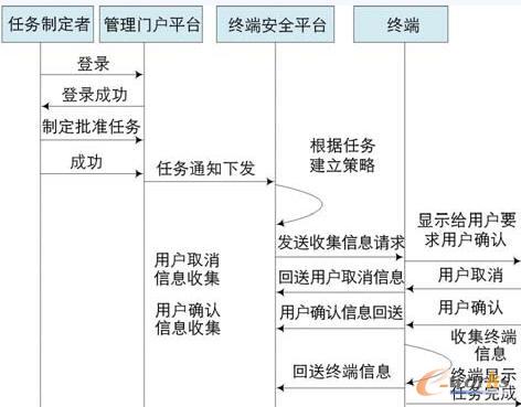 以管理員通過移動終端安全管理控制平臺進行終端信息采集為例,來介紹一下信息采集的過程,如圖3所示: