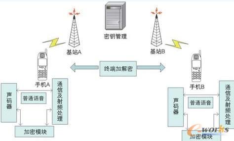 目前在國內三大運營商中,中國電信已經推出基于語音加密的加密通信業(yè)務,其基本原理就是在終端中增加加密模塊,實現對語音的加解密,如圖5所示;并且采用加密短信的方式交互密鑰,通話一次一密,密鑰通過密鑰管理中心來分發(fā)。除了語音加密,還可以利用該系統(tǒng),或者重開發(fā)新系統(tǒng)對數據類信息(SMS、MMS等)進行加密,從而實現語音/數據的端到端加密。