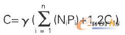 機(jī)房設(shè)計(jì)時(shí)根據(jù)用途、設(shè)備數(shù)量、功率等不同因素,對(duì)其用電容量進(jìn)行計(jì)算,從而選擇相應(yīng)的電源設(shè)備和UPS設(shè)備。假設(shè)機(jī)房的用途系數(shù)為γ,已有設(shè)備數(shù)量為Ni,對(duì)應(yīng)的設(shè)備最大功率為Pi(i為設(shè)備種類號(hào)),則機(jī)房的總設(shè)計(jì)容量C 的經(jīng)驗(yàn)計(jì)算公式為: