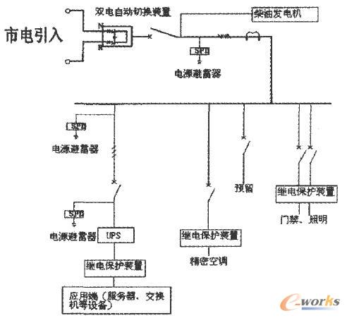 機(jī)房供電必須要有多重保護(hù)設(shè)計(jì),主要為電源的繼電保護(hù)設(shè)計(jì)和供電的冗余設(shè)計(jì)。繼電保護(hù)故障點(diǎn)采集主要應(yīng)針對(duì)機(jī)房?jī)?nèi)沒有連接UPS其它設(shè)備,如空調(diào)、照明設(shè)備等。主要應(yīng)該在這些備的開關(guān)上安裝過(guò)流或過(guò)壓保護(hù),以防這些設(shè)備故障的動(dòng)作對(duì)其它設(shè)備電源造成干擾。