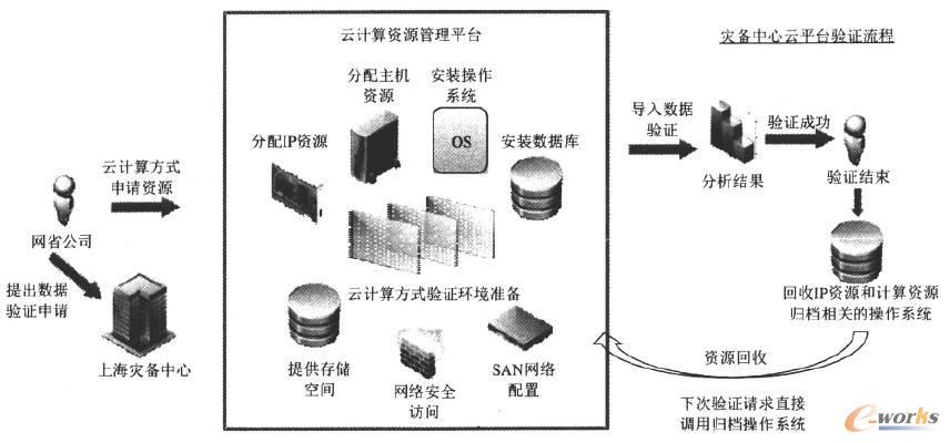 1)申請(qǐng)。用戶(各網(wǎng)省公司)在云計(jì)算資源管理平臺(tái)提出數(shù)據(jù)驗(yàn)證申請(qǐng),云計(jì)算資源管理平臺(tái)負(fù)責(zé)申請(qǐng)過程的審批流程,使原有流程具備IT支撐。