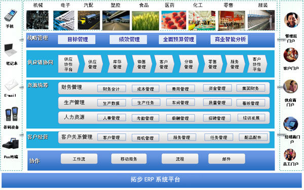 拓步ERP系統(tǒng)平臺覆蓋了電子、塑膠、化工、機(jī)械、汽配、醫(yī)藥、食品、服裝等不同企業(yè)行業(yè)應(yīng)用,集成了各行各業(yè)的個(gè)性化需求。