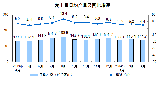 | 火力發(fā)電量(億千瓦時(shí)) | 3412 | 2.0 | 14079 | 4.3 |