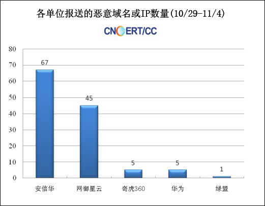 中國(guó)IDC評(píng)述網(wǎng)11月13日?qǐng)?bào)道:近日,據(jù)CNCERT抽樣監(jiān)測(cè)結(jié)果和國(guó)家信息安全漏洞共享平臺(tái)(CNVD)發(fā)布的數(shù)據(jù)得悉,在10月29日至11月4日期間,我國(guó)互聯(lián)網(wǎng)網(wǎng)絡(luò)安全指數(shù)整體評(píng)價(jià)為差。