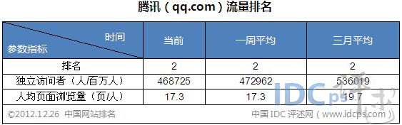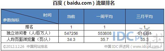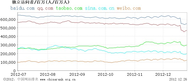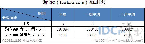本文標題:2012年12月國內(nèi)網(wǎng)站流量統(tǒng)計Top5:百度騰訊淘寶居前三