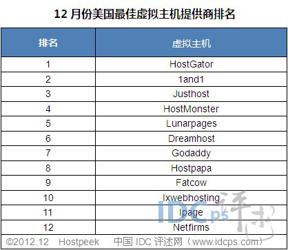 本文標(biāo)題:2012年12月美國(guó)最佳虛擬主機(jī)商TOP12性能評(píng)測(cè)