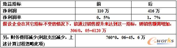 從以上分析可以看出,庫存下降15%(絕對數(shù)760萬),其它指不變的情況下: