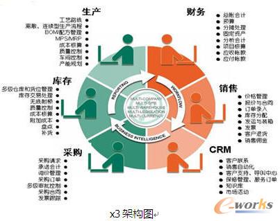 4、第四部分是參數(shù)化配置。企業(yè)的高層領(lǐng)導(dǎo)、總經(jīng)理,他關(guān)注的角度,是企業(yè)未來的規(guī)劃:是不是要在全國各地開分公司,或者說要進(jìn)軍海外,這時(shí)候就需要對整體的架構(gòu)有一個(gè)遠(yuǎn)景的考慮。而我們的X3對成長性企業(yè)的發(fā)展會有一個(gè)很好的支持,從單公司變成多公司,這些變化可以通過參數(shù)配制來完成,從信息化的角度支撐企業(yè)的升級。