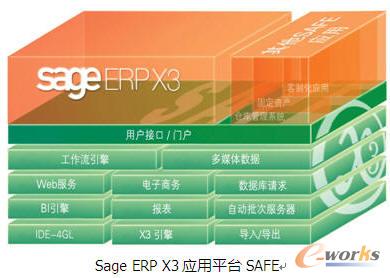 我們的產(chǎn)品功能特點(diǎn)如何體現(xiàn)呢?Sage ERP X3提供了一個(gè)平臺,這個(gè)平臺包括了我們的開發(fā)平臺、開發(fā)語言其中包括了X3引擎、報(bào)表引擎、BI引擎、多媒體數(shù)據(jù)等所有這些內(nèi)容,組成了平臺的底層架構(gòu),而所有的應(yīng)用都是 建在這個(gè)平臺上的。