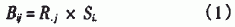 零部件分級(jí)碼作為主碼的第二級(jí),由4個(gè)碼位組成,各碼位間是一種層次遞進(jìn)關(guān)系,逐級(jí)往下細(xì)分,分別是產(chǎn)品、部件、子部件、子子部件、零件。如果用矩陣毋表示零部件分級(jí)碼,S表示行向量,Rj表示列向量,行向量用碼位的碼值表示,列向量表示零部件間的關(guān)系,則向量B、S、R的關(guān)系可由向量表達(dá)式表示