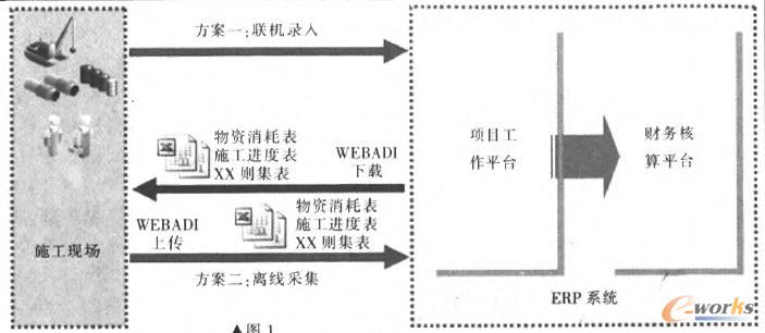 根據(jù)各環(huán)節(jié)業(yè)務(wù)特點設(shè)計合適的進度收集方案:通過與采購、發(fā)運、生產(chǎn)等模塊的集成,自動獲取進度狀況;對于網(wǎng)絡(luò)條件較差、人員素質(zhì)不高的施工現(xiàn)場,采用離線收集的方式進行進度反饋,提高現(xiàn)場數(shù)據(jù)收集可行性,見圖1。