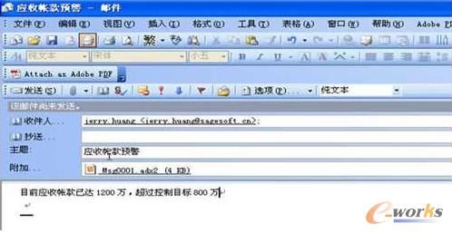 通過(guò)與ERP 集成的預(yù)警平臺(tái),河套酒業(yè)可以根據(jù)需要監(jiān)控任意環(huán)節(jié),向相應(yīng)管理者發(fā)布預(yù)警信息。可以針對(duì)同一個(gè)業(yè)務(wù)中不同的業(yè)務(wù)動(dòng)作定義監(jiān)控,可以集中監(jiān)控,也可以根據(jù)管理層的要求對(duì)特定條件異常業(yè)務(wù)進(jìn)行監(jiān)管。在異常業(yè)務(wù)發(fā)生的同時(shí),通過(guò)郵件或短信等指定形式主動(dòng)向監(jiān)管進(jìn)行報(bào)告。如下圖對(duì)整體應(yīng)收帳款超過(guò)指定額度的預(yù)警。