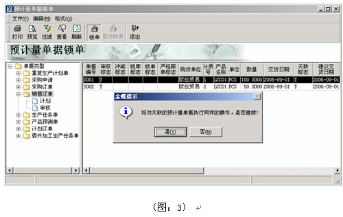 首先在進(jìn)行選單計(jì)算前,用預(yù)計(jì)量鎖單功能對(duì)銷售訂單SO01進(jìn)行鎖單(圖:3)。