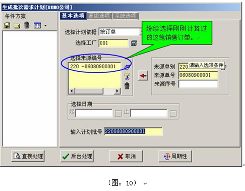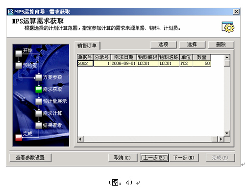 其次,在MRP計(jì)劃方案中“啟用鎖單沖銷算法”,然后進(jìn)行計(jì)算,只選SO02這張銷售訂單(圖:4)。