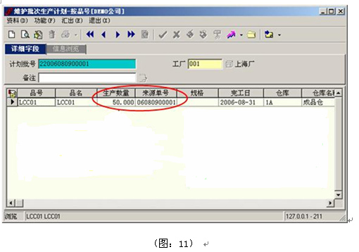 注意了,此時(shí)錯(cuò)誤出現(xiàn)了,理論上NO.1已經(jīng)產(chǎn)生過生產(chǎn)訂單了,不應(yīng)該再產(chǎn)生了,但實(shí)際上易飛會(huì)再次產(chǎn)生50個(gè)計(jì)劃訂單(圖:11)。