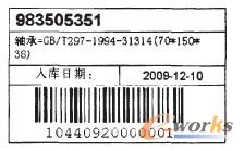 條碼標(biāo)簽顯示的信息有:零件代號(hào)、名稱(chēng)、規(guī)格、標(biāo)準(zhǔn)、入庫(kù)日期與條碼,如圖9所示。條碼位為14位,編碼規(guī)則如圖10所示。