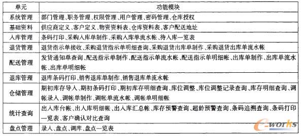 表2 WMS系統(tǒng)的PC應(yīng)用程序主要功能