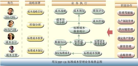 U8標(biāo)準(zhǔn)成本插件總體業(yè)務(wù)場(chǎng)景 隨著企業(yè)業(yè)務(wù)流程、管理基礎(chǔ)的日趨標(biāo)準(zhǔn)化,一些企業(yè)開始用標(biāo)準(zhǔn)成本法管理控制企業(yè)的生產(chǎn)成本,希望通過標(biāo)準(zhǔn)成本法量化并細(xì)化目標(biāo)導(dǎo)向下企業(yè)各部門在經(jīng)營(yíng)發(fā)展中的工作成效。U8標(biāo)準(zhǔn)成本插件基于U8 成本管理系統(tǒng)開發(fā),利用成本管理系統(tǒng)的基礎(chǔ)設(shè)置、數(shù)據(jù)錄入功能,新增標(biāo)準(zhǔn)成本制定、標(biāo)準(zhǔn)成本成本核算、憑證處理及相關(guān)報(bào)表,實(shí)現(xiàn)了完整的標(biāo)準(zhǔn)成本核算體系,在很大程度上滿足了采用標(biāo)準(zhǔn)成本進(jìn)行財(cái)務(wù)核算的用戶的需求。本插件目前已經(jīng)實(shí)現(xiàn)了生產(chǎn)訂單級(jí)的標(biāo)準(zhǔn)成本核算。