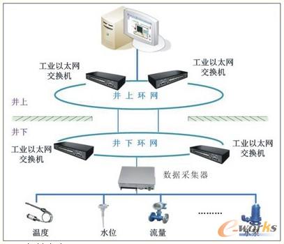 (2)通訊:PLC控制器配備以太網通訊模塊,可把PLC接入井下工業(yè)網,中央泵房PLC接入井下中央變電所環(huán)網交換機,經井上井下環(huán)網將水泵機組實時的運行信息傳到地面監(jiān)控系統(tǒng)。支持標準OPC接口實現(xiàn)無縫交互功能。