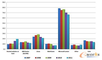 通過(guò)下面的圖可以了解來(lái)自制造業(yè)企業(yè)的TEC Advisor的用戶為了今后的ERP系統(tǒng)傾向于選擇哪些服務(wù)器