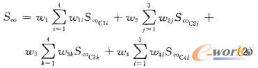 式中,W1、W2、W3、W4分別為指標C1、C2、C3、C4的權重;W1i、W2j、W3k、W4l分別為子指標C1i、C2j、C3k、C4l的權重;Scoc1i、Scoc2j、Scoc3k、Scoc4l分別為子指標C1i、C2j、C3k、C4l的評分。