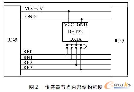 也就是說,每個(gè)傳感器節(jié)點(diǎn)的內(nèi)部結(jié)構(gòu)需要具備兩個(gè)功能:①每個(gè)傳感器節(jié)點(diǎn)具有兩個(gè)直通連接的RJ45接口,以實(shí)現(xiàn)咬尾式連接;②每個(gè)傳感器節(jié)點(diǎn)能夠設(shè)定通信線路,因?yàn)槊總(gè)傳感器獨(dú)享1根線路。