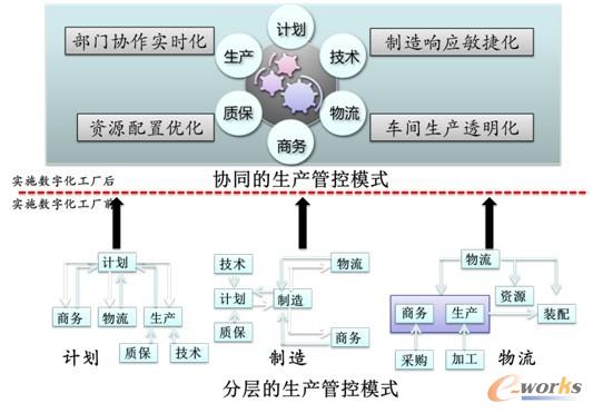 同時(shí),建設(shè)數(shù)字化工廠有助于打通制造信息流的七經(jīng)八脈,將制造企業(yè)從各自為政的分層生產(chǎn)管控模式轉(zhuǎn)變?yōu)閰f(xié)同生產(chǎn)管控模式,從而實(shí)現(xiàn)資源配置的最優(yōu)化、車間生產(chǎn)透明化、制造響應(yīng)敏捷化和部門協(xié)作實(shí)時(shí)化。