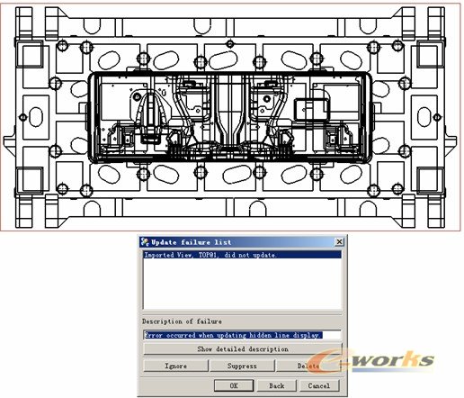 在添加TOP試圖時,出現(xiàn)視圖不能更新的提示,經(jīng)過分析測試發(fā)現(xiàn)是虛擬交線引起的.(見圖5)