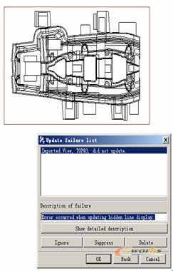 在更新視圖時,出現(xiàn)視圖不能更新的提示,經(jīng)過分析測試發(fā)現(xiàn)是虛擬交線引起的.(見圖6)