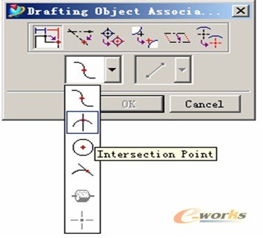 步驟5、在隨后出現(xiàn)的對話框中將選擇過濾器切換到交點(Intersection Point)模式(如圖14所示),然后分別選擇剛才劃的2條中心線. 這時失效的尺寸已經(jīng)正常顯示了