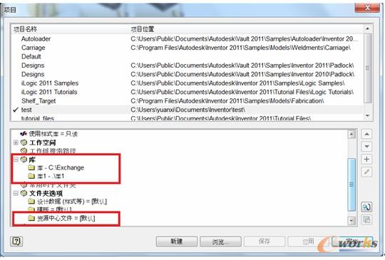 第二處的"資源中心文件"指的是,實(shí)例化后的資源中心文件的存放地址。在INV中,當(dāng)用戶從資源中心中第一次打開一個(gè)標(biāo)準(zhǔn)零件后,這個(gè)標(biāo)準(zhǔn)零件就會(huì)被存儲(chǔ)到上述的位置,以便用戶下次使用的時(shí)候,效率更高。沒有打開過的標(biāo)準(zhǔn)零件是不會(huì)出現(xiàn)在這里的,所以這個(gè)位置實(shí)際上是一個(gè)catch的位置。例如C:\Users\yuanxi\Documents\Inventor\Content Center Files\R2011\zh-CN。