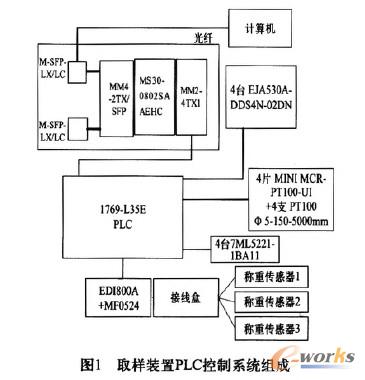 該控制系統(tǒng)主要由硬件和軟件兩部分組成,其中硬件包括:MS30交換機(jī)一套、羅克韋爾PLC一臺(tái)(共有8個(gè)1769一IQ32數(shù)字量輸入模塊,5個(gè)1769一IF8模擬量輸入模塊,3個(gè)1769.OV32T數(shù)字量輸出模塊,所用保留備用I/O點(diǎn)的比例都在30%以上)、壓力、溫度、重量變送器以及其他輔助元件、常規(guī)電氣元件等。軟件主要采用羅克韋爾公司的工控軟件,包括通訊軟件RSlinx,編程軟件RSLogix5000,組態(tài)軟件Factory Talk View SE,通過硬件和軟件相結(jié)合,實(shí)現(xiàn)數(shù)據(jù)自動(dòng)采集并保存,運(yùn)用組態(tài)畫面能夠?qū)崿F(xiàn)對(duì)整個(gè)系統(tǒng)的手動(dòng)和自動(dòng)兩種控制方式,取樣裝置PLC控制系統(tǒng)原理組成,現(xiàn)場試驗(yàn),控制系統(tǒng)實(shí)際接線分別如圖1、圖2和圖3所示。