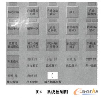 1)數(shù)據(jù)的采集主要通過傳感器感受信號(hào),經(jīng)過信號(hào)隔離器傳到PLC,在經(jīng)過軟件的濾波器(由于采集的是準(zhǔn)靜態(tài)信號(hào)所以截?cái)囝l率設(shè)為2Hz即可)OPC服務(wù)器負(fù)責(zé)采集數(shù)據(jù)并在組態(tài)畫面中顯示,如圖4所示。