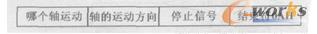實(shí)際上就是PC機(jī)與PLC之間的通信數(shù)據(jù)協(xié)議問題, PC機(jī)實(shí)時(shí)傳送的數(shù)據(jù)由4 個(gè)字節(jié)組成, 分別為軸、軸的運(yùn)動(dòng)方向、停止信號(hào)、最后是結(jié)束符0AH,數(shù)據(jù)格式如下: