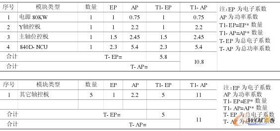 系統(tǒng)規(guī)定:T-EP 必須小于 8,T- AP 必須小于17,而以上計(jì)算結(jié)果均不滿足這一條件,在該系統(tǒng)設(shè)計(jì)時(shí),采用一塊監(jiān)控模塊,來分擔(dān)系統(tǒng)對(duì)電子回路和功率部件回路電源管理的壓力。具體做法是電源模塊在電子線路上只帶主軸和 Y 軸,其余的軸由監(jiān)控模塊供電。如下表計(jì)算: