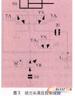 動力頭是既能完成進給運動,又能同時完成刀具切削運動的動力部件,其液壓系統(tǒng)如圖3所示。